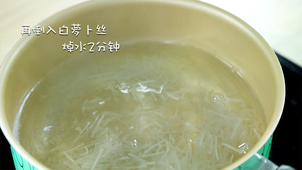 »白萝卜反复焯水,可以最大限度减少辛辣味哦。