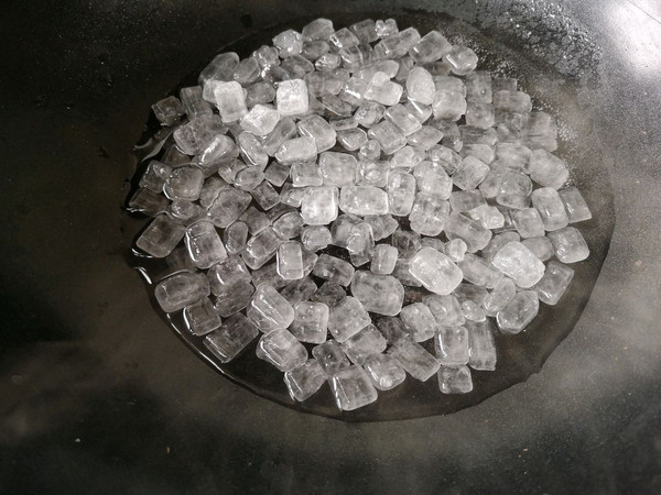 中火煮开后转小火,一边煮一边用筷子慢慢轻搅动加速冰糖融化,直至糖浆起密集的大泡。