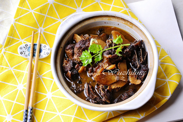 然后烹入料酒,加入所有的调料和没过材料的水,大火烧开后转小火焖煮70分钟(因为我用的是家养的鸭子,所有肉质比较紧实,时间要稍微炖煮的久一些好)