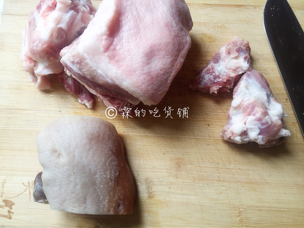 准备好肋条和咸肉。
