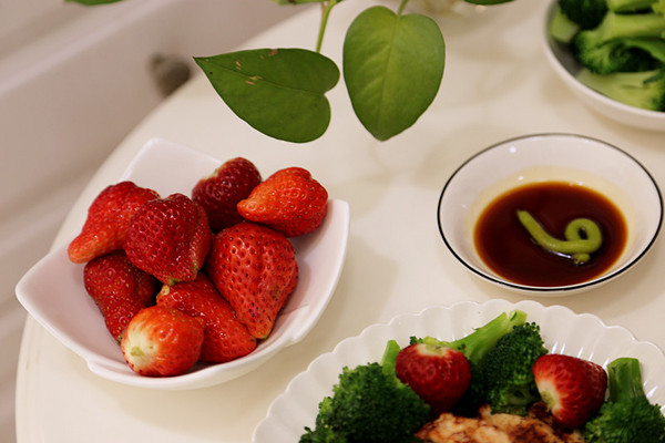 出锅装盘,放煮好的西兰花和小番茄,草莓这些都可以