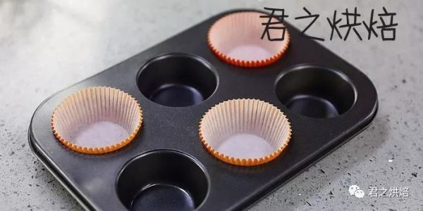 将麦芬纸托放入模具里(我们通常用的六连模间距比较小,烤这种蘑菇头麦芬需要交错放,只能烤3个,不然距离不够会挤到一起)。