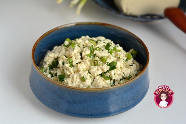 豆腐入碗中,用勺子碾碎,有小块状也没有关系,吃起来口感更好;