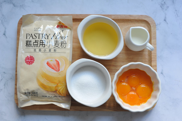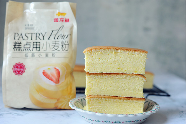将加热好的玉米油放入干净容器中,筛入金龙鱼蛋糕用小麦粉;