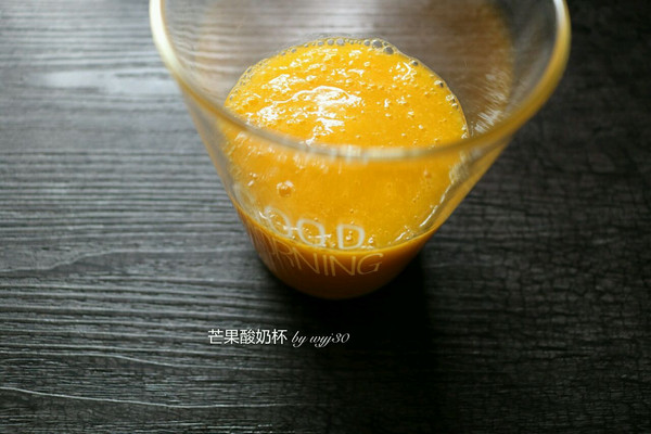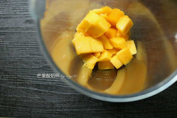 切好芒果肉,留几粒放最上层,其余打成果泥。