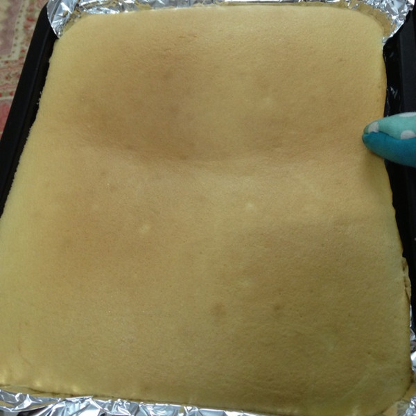 倒入铺了锡纸的烤盘中,去掉气泡!