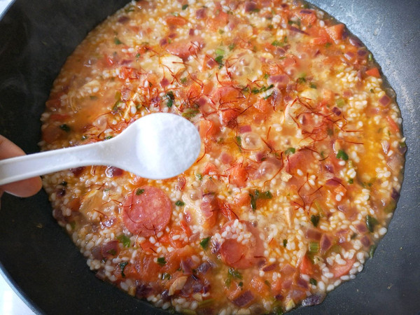 藏红花,是这道海鲜饭不可缺少的重要原料,是西班牙海鲜饭的灵魂,如果你吃过放藏红花的海鲜饭就能一下子记住它的味道。