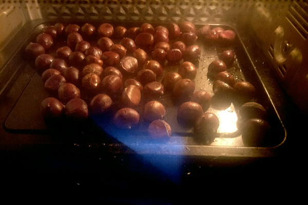 栗子烤开口以后刷上蜂蜜水,中途刷几次蜂蜜水直至烤熟。约烤20分钟左右。