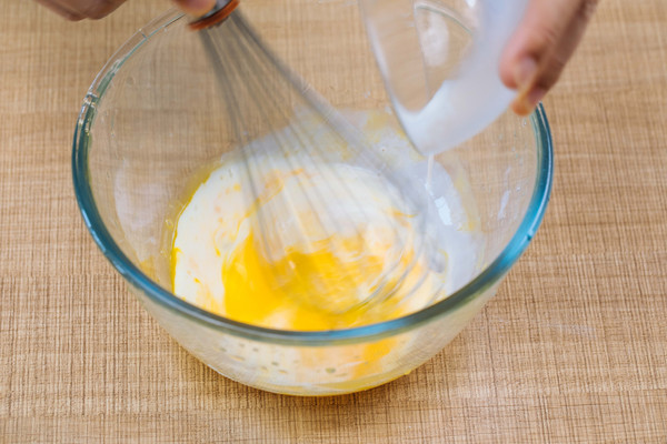 再加入35g色拉油,搅拌至乳化状态,即看不到油星的状态。