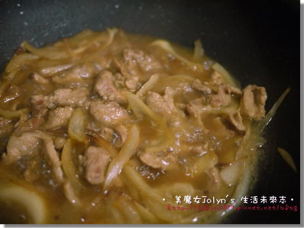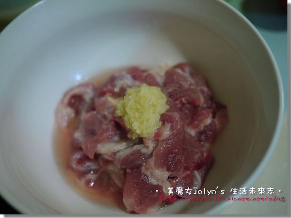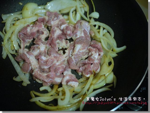 先将主食材梅花猪肉片洗净、洋蒽切丝备用
