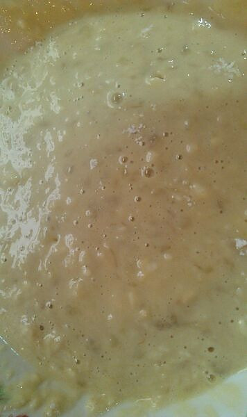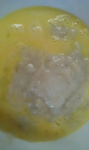 牛奶,砂糖,鸡蛋液,香蕉泥,植物油放大腕里搅拌均匀…