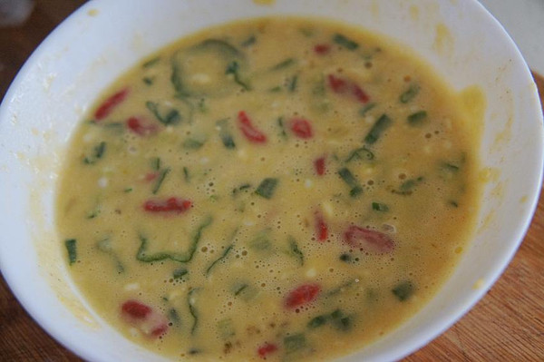 搅拌均匀成面糊,如果感觉面糊很干,可以兑些水调匀