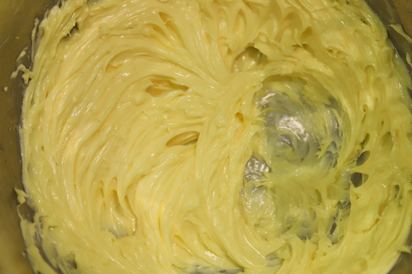 电动打蛋器打发至膨胀变白,软化到位的黄油非常容易就可以打发好。