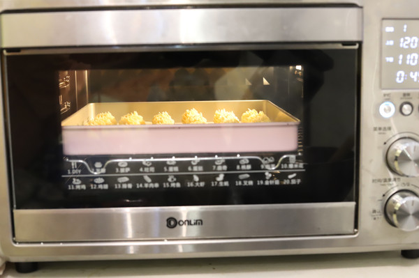烤箱预热120度,上下火,50分钟,再转180度10分钟。