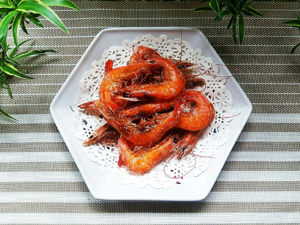 盐先炒热,面包桶底铺盐,摆上虾,一层虾一层盐。