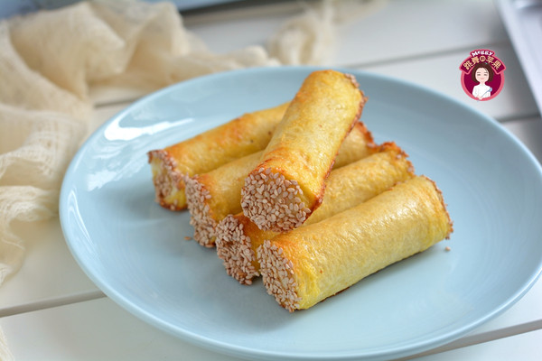 烤盘里提前铺好锡纸,哑光的一面接触食用;将裹满蛋液、两端蘸满芝麻的吐司山药卷码放在烤盘里;