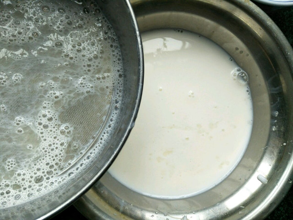 将牛奶蛋白过筛一次成双皮奶液。