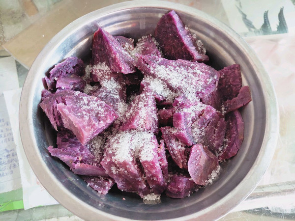 木薯粉和紫薯混合至无干粉无颗粒状态