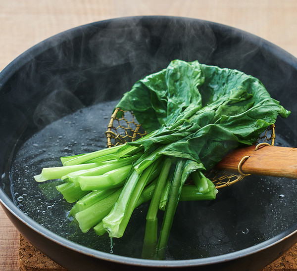 锅中热油,爆香蒜末,放入菜心快速翻炒。