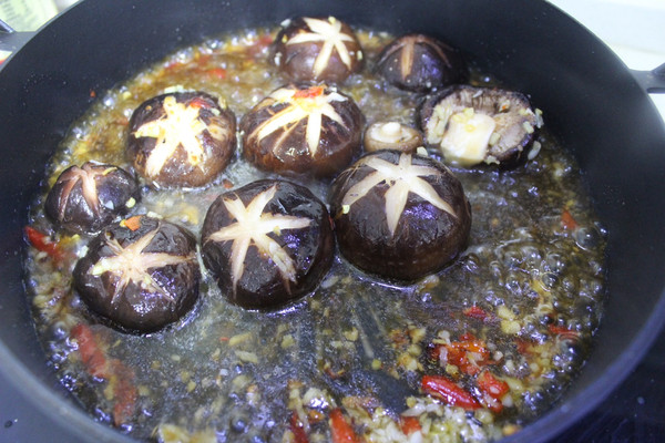 加入料汁,转小火,盖上盖子焖烧之收汁,中间翻一次面