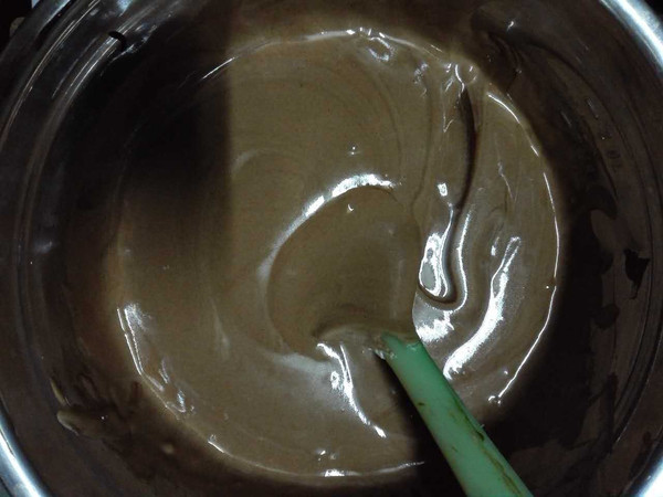 离火,趁热加入巧克力搅拌均匀。