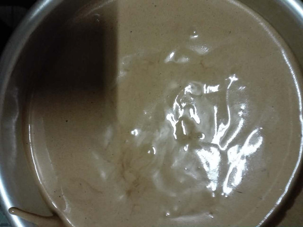 然后倒入剩下的蛋白无机盐,翻拌均匀,做好的面糊细腻浓稠。