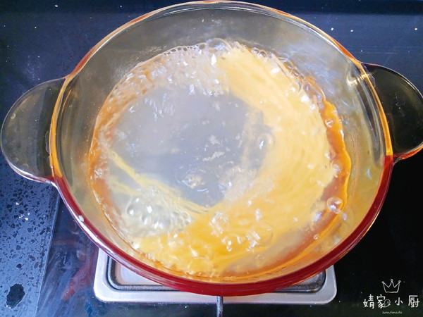 冷锅中放入15克黄油,开中小火让其完全融化。