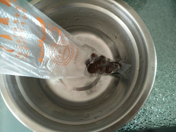 巧克力放入裱花袋用热水融化