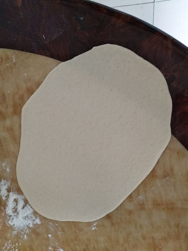红色的面团也一样擀薄,擀长