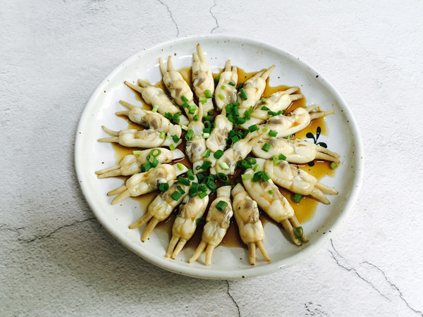 将蛏子表面的泥土冲洗干净再加入1小勺盐浸泡两个小时,让蛏子里的泥沙吐干净