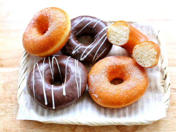 家里没有巧克力的,也可以直接将甜甜圈表面蘸白糖来吃,一样美味。