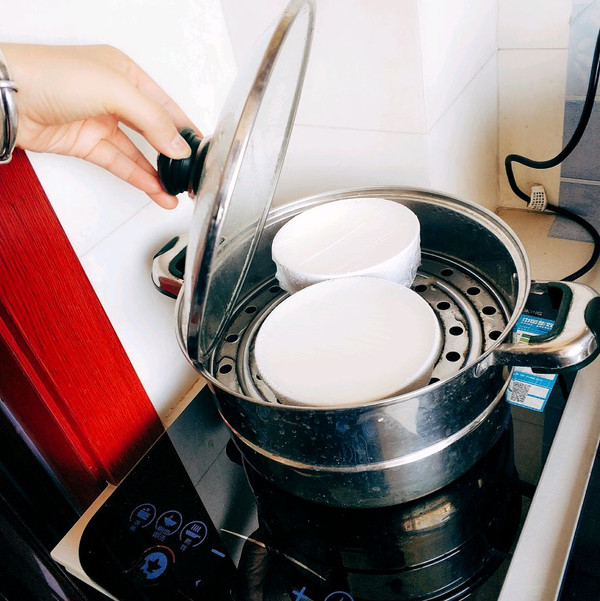 在装双皮奶的容器表面盖上一层保鲜膜,以免在蒸的过程中蒸汽流入牛奶中,过来后小火在蒸十分钟。这里的时间是根据容器大小来的,自己把握时间。