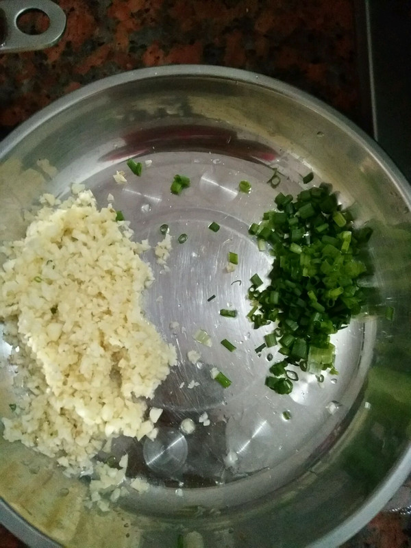 蒜头切末,葱花切碎,豆粉丝提前浸泡软就可以了