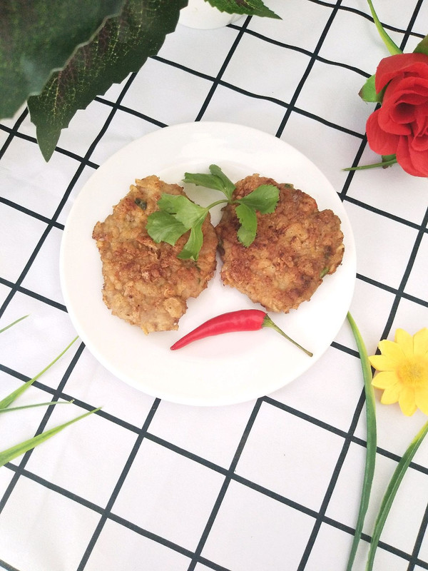 带上一次性手套,抓取适量的猪肉泥,在手里拍打成片