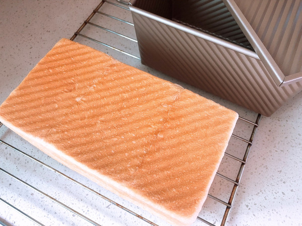 烤出后立即取出晾凉至手温装进土司盒里放入冰箱冷藏两小时左右再拿出来切,这样不掉渣好切