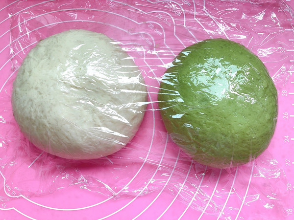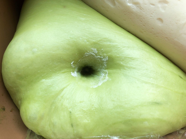 放回面包桶里用保鲜膜隔离开防止串色。26~28度的室温下发酵90分钟左右