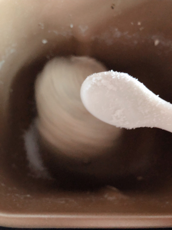 把除黄油、盐、酵母、抹茶粉之外的所有东西加进面包桶里,和面模式三分钟没有干粉即可