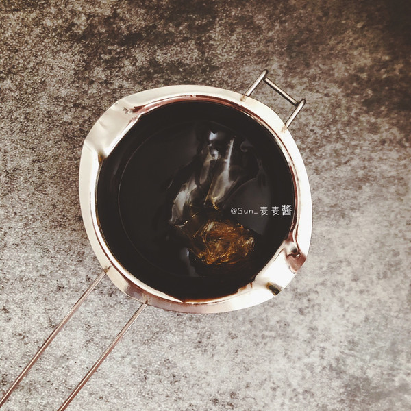 100g黑巧克力+30g牛奶隔水加热至巧克力融化,搅匀离锅
