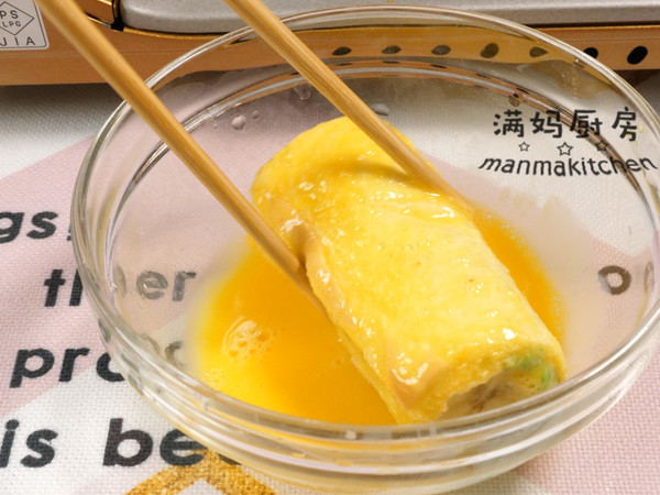 卷好的吐司裹上蛋液