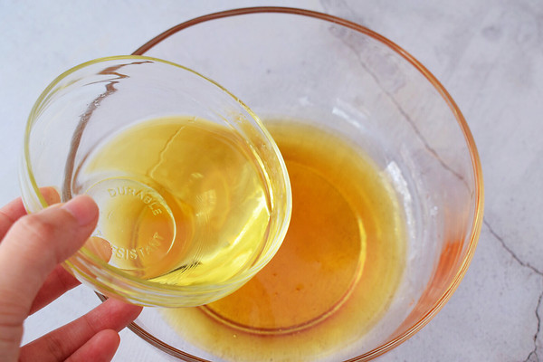 转化糖浆加入枧水,用手动打蛋器搅拌均匀