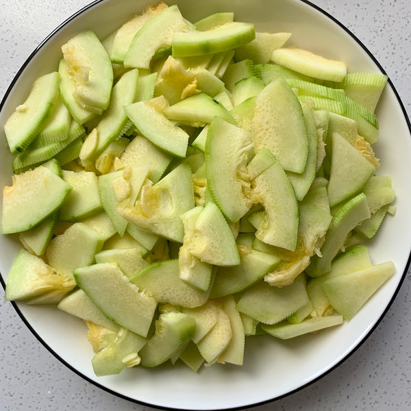 准备食材,窝瓜削皮。
