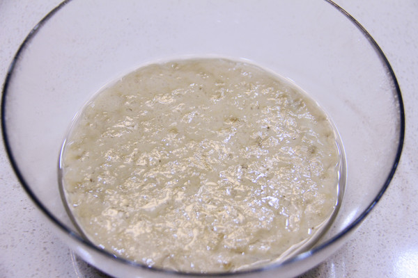 面团盖上保鲜膜,室温松驰1-2小时,面团摊开变得细腻些,还会析出部分水。