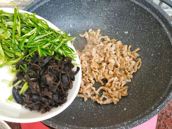这个期间把青椒、木耳、葱蒜切一下