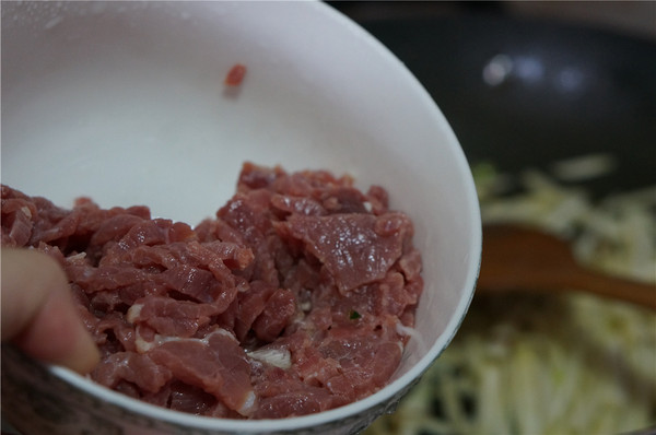 将泡过冰水的薯粉下锅,拌至挂味就可以。