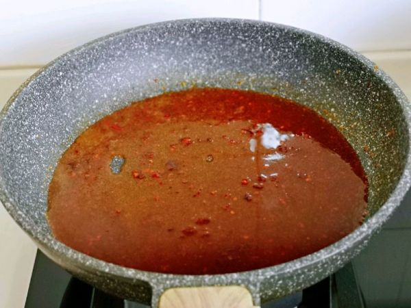 再加入孜然粉,直接大火收汁至浓稠,撒上白芝麻,关火出锅。