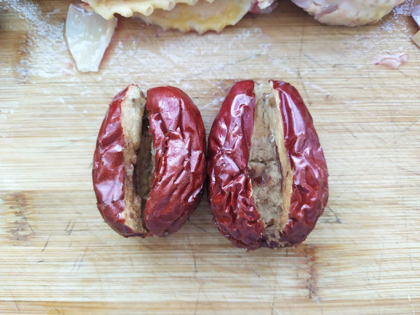把枣中间破开,去除枣核