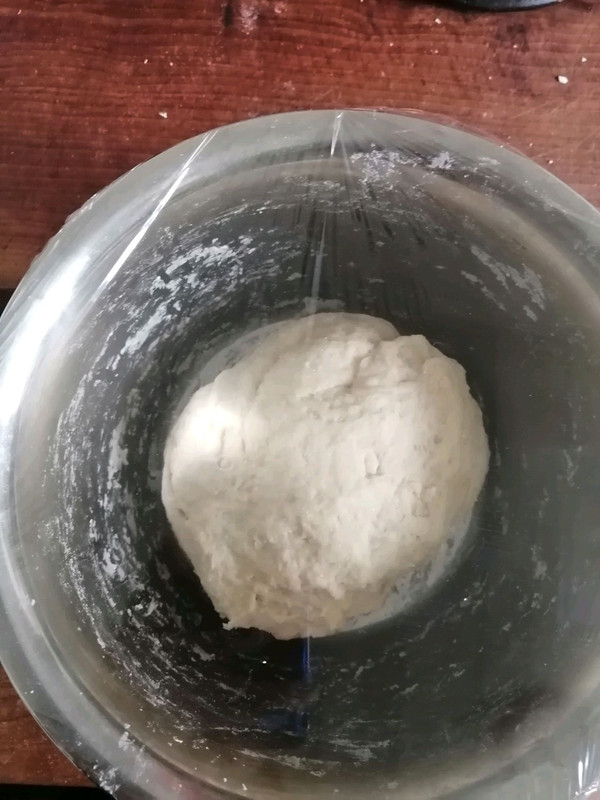 将揉好的面团放在盆内盖上保鲜膜醒发3个小时左右至两倍大