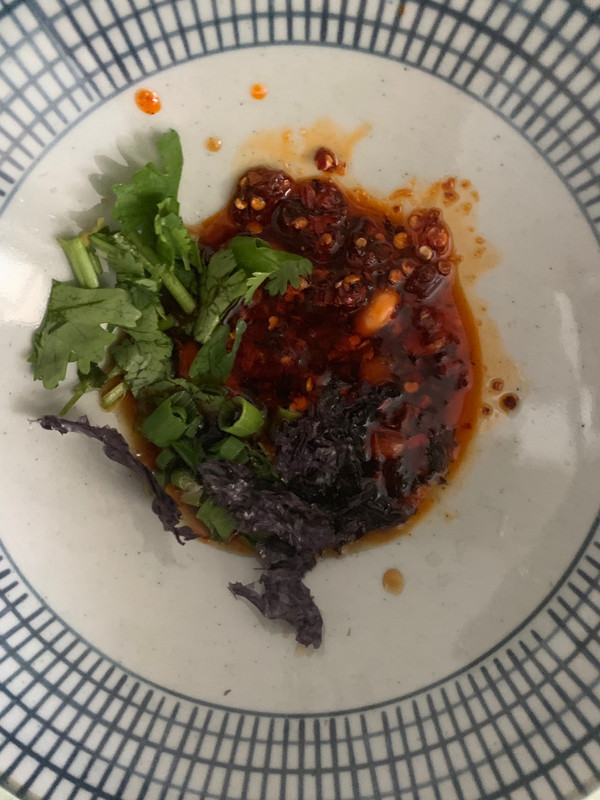 碗里放味极鲜酱油、米醋、辣椒油。