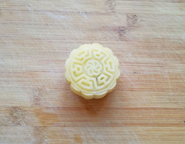轻轻按压一下,一个冰皮月饼就完整脱模了。