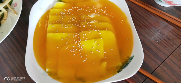 浇到奶豆腐上完成,没有糖针,就放芝麻了